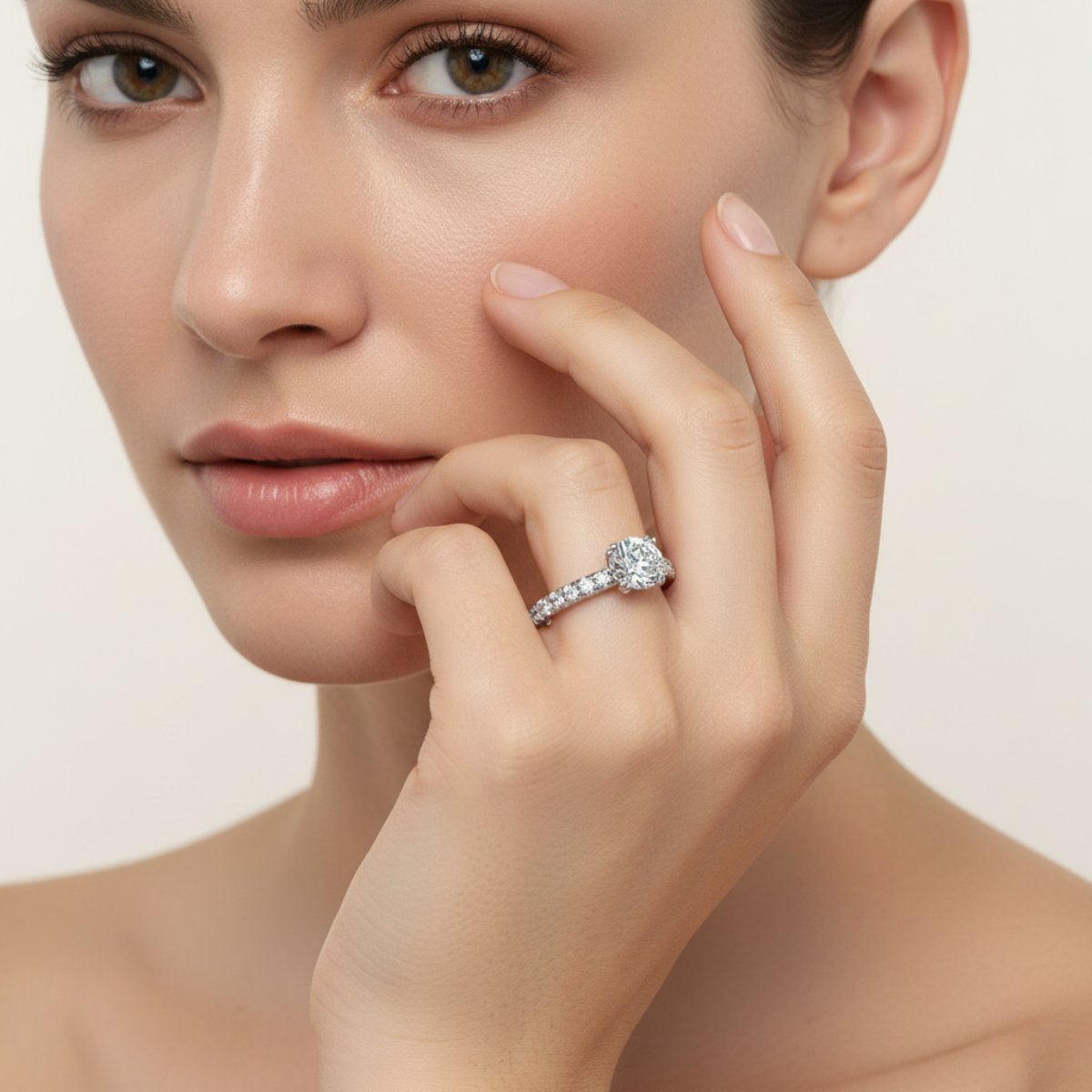 Pavé micro-set shoulders in a uniform single row